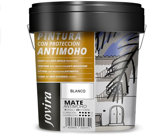 JOVIRA PINTURAS Pintura Antimoho 6 Kilos | Evita el moho, resistente a la aparición de moho en paredes, aspecto mate. (4 Litros, Blanco) A-7