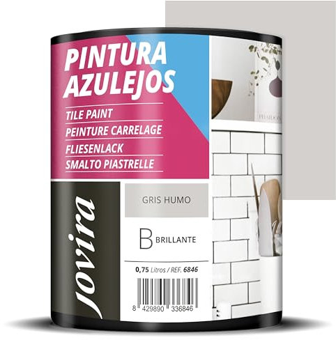 PINTURAS DECOLOR - Cocinas y Baños. Pintura Satinada al Agua para Azulejos, Paredes y Techos.(GRIS SUAVE) 750ml