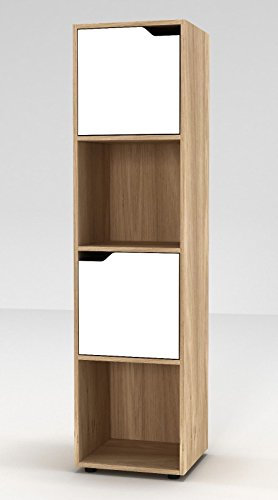 Estantería de URBNLIVING, de madera, con forma cúbica, con puertas , madera, Oak Bookcase and White Door, 4 Cube