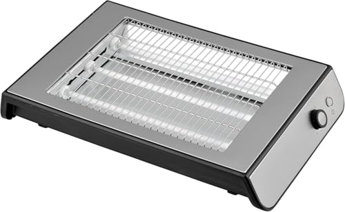 Tostadora de 1000 W con doble ranura de 3.5 cm de ancho para tostar 2 tostadas grandes al mismo tiempo. Adem s, cuenta con varillas superiores para calentar alimentos de gran tama o como boller a, pasteles o cruasanes.